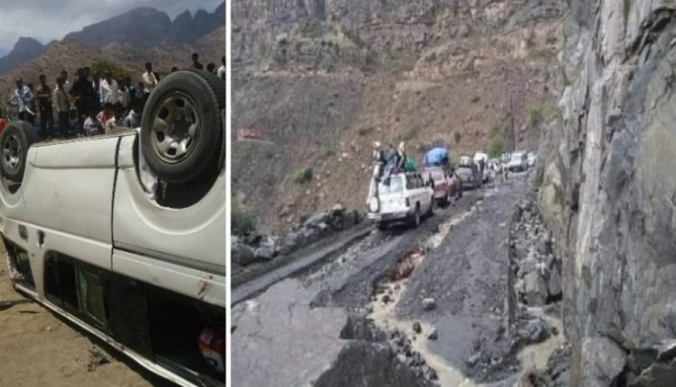 وقال شهود عيان إن مركبة من نوع “هايص” تقل مسافرين من أسرة واحدة من أبناء منطقة أقيان عزلة زريقة الشام، بمديرية المقاطرة، سقطت في نقيل هيجة العبد إلى أسفل الجبل.