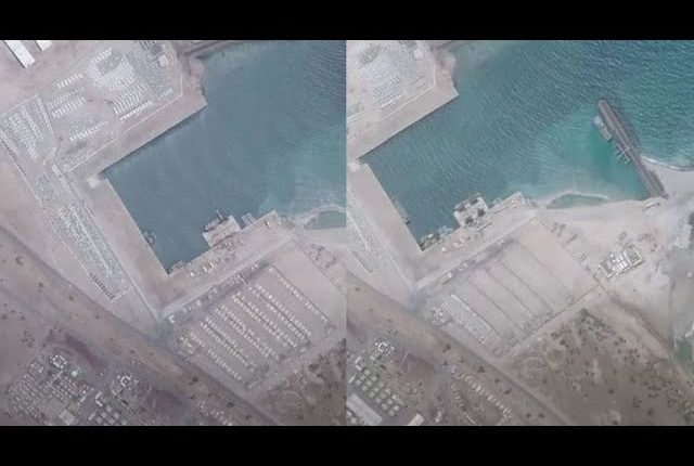 وتظهر الصور التي التقطتها شركة Planet Labs بالتزامن مع إعلان أبوظبي عن سحب قواتها من اليمن تقريباً، عمالاً يهدمون منشآت يعتقد أنها ثكنات بجانب الميناء، وتم جمع صفوف متقنة من مواد ومعدات في شمال الميناء، في إنتظار شحنها على الأرجح.