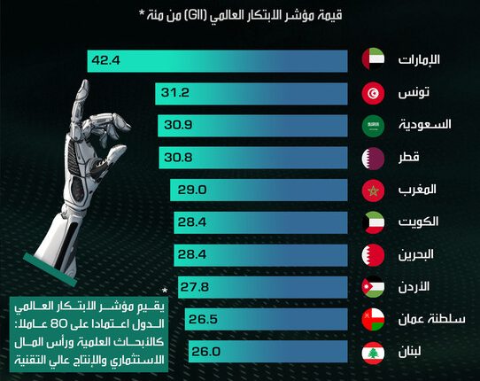 أكثر الدول العربية إبتكاراً.. “إنفوجرافيك“..! On فبراير 22, 2021 1٬104 Share أبين اليوم – إنفوجرافيك أكثر الدول العربية إبتكاراً.. “إنفوجرافيك“..! المصدر: RT العربية قراءة المزيد أكثر الدول العربية إبتكاراً.. “إنفوجرافيك“..! 1٬104 Share FacebookTwitterGoogle+ReddItWhatsAppPinterestالبريد الإلكتروني