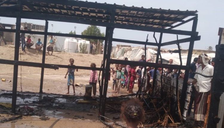 اندلع حريق هائل حريق في مخيم “جابر” للنازحين بمديرية الخوخة محافظة الحديدة(غرب اليمن).