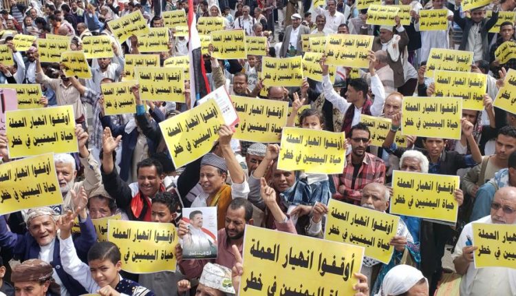 ووصل الوضع بالمواطنين في المناطق الجنوبية إلى التهافت على الحصول على العملة الورقية التي تتعامل بها حكومة صنعاء بسبب ارتفاع قيمتها بمقابل إنهيار العملة الجديدة التي أقدمت حكومة هادي على طباعتها خلال الأعوام الماضية والمقدرة بـ”تريليون ونصف” ريال، وبدون غطاء تأميني يحافظ على قيمتها الشرائية ما أدى إلى انهيارها..