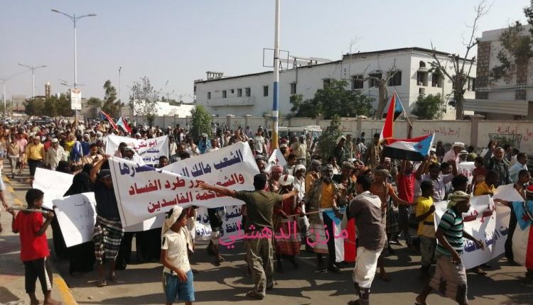 تصاعد الإحتجاجات الغاضبة في عدن .. التظاهرات تقترب من المعاشيق ودعوات لاقتحام معقل التحالف..!