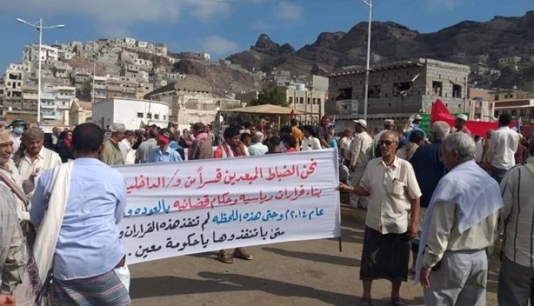 وسط إحتدام الصراع بين حكومة معين وسلطة الإنتقالي.. مئات المحتجين يتجمعون أمام مقر إقامة حكومة هادي بعدن..!