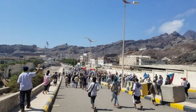 وكان المئات من المتظاهرين تقاطروا صباحاً على القصر تلبية لدعوات غضب دعت لها الهيئة العسكرية العليا للأمن والجيش الجنوبي ونقابات عمال الجنوب المحسوبة على الإنتقالي.