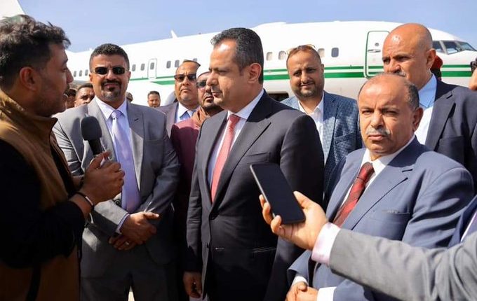وتعد هذه أول مرة يخرج فيها رئيس الحكومة معين عبدالملك، منذ وصوله إلى عدن منذ نحو ثلاثة أشهر.