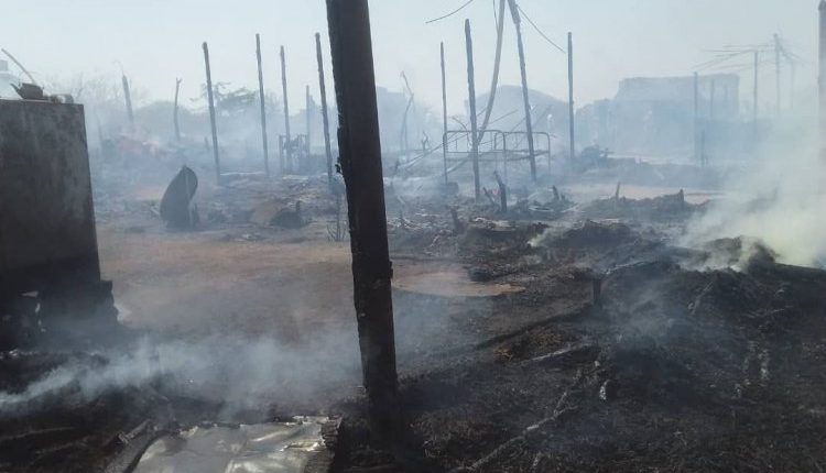 دمر حريق هائل مخيم للنازحين، الأحد، في مديرية الزهرة بمحافظة الحديدة غربي اليمن.