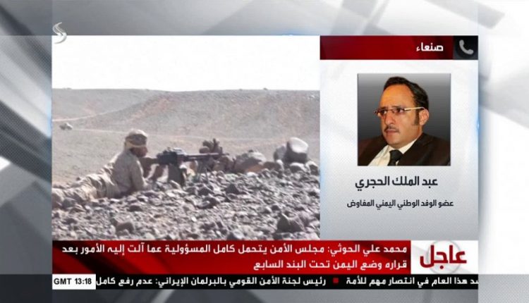 وفي حوار مباشر مع قناة العالم اعتبر عبد الملك الحجري عضو الوفد الوطني اليمني المفاوض ان التصريحات الأمريكية ليست غريبة على الأمريكيين وان أمريكا هي عدو، وان العدوان على اليمن هو أمريكي بالدرجة الأولى وهنالك ضوء أخضر أمريكي لبدء العدوان على اليمن، مع وجود توجيهات أمريكية بإستمرار العدوان عليه.