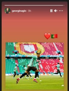 وفور نهاية المباراة نشرت جورجينا صورة يظهر فيها رونالدو يتدرب بقميص البرتغال وعلى رأسه تاجا ملكيا وأرفقت الصورة بعلم البرتغال وقلب حب، في إشارة منها إلى أن النجم البرتغالي هو ملك كرة القدم ما اعتبره المتابعون مواساة بعد الخسارة القاسية.