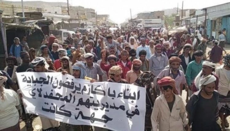 المتظاهرون نددوا بالفساد والانتهاكات والجبابات التي تفرض من قلب السلطة المحلية وقوات هادي على المواطنين والتجار والشاحنات.