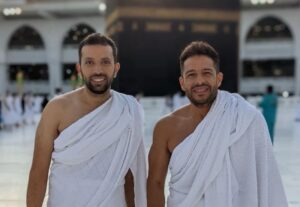 نشر الكوافير أحمد الوكيل صورة جديدة له بصحبة حماقي وهما يرتديان ملابس الإحرام، وعلق قائلاً: “الحمدلله”.