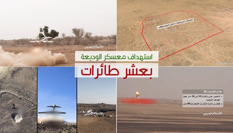 من ناحية.. أظهرت مشاهد فيديو استهداف معسكر الوديعة بعشر طائرات مسيرة من نوع (قاصف 2k) منذ إقلاعها وحتى انفجارها بأجواء مركز القيادة ومواقع التدريب وقطاعات الحشد ومواقع أخرى داخل معسكر الوديعة، تنامي قدرات قوات صنعاء، على الصعيدين العسكري والإستخباراتي، واختراق صفوف قوات التحالف و”هادي”.