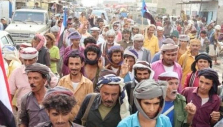 أبين.. تظاهرة شعبية غاضبة في مديرية المحفد تندد بفساد الشرعية وإنهيار العملة..!