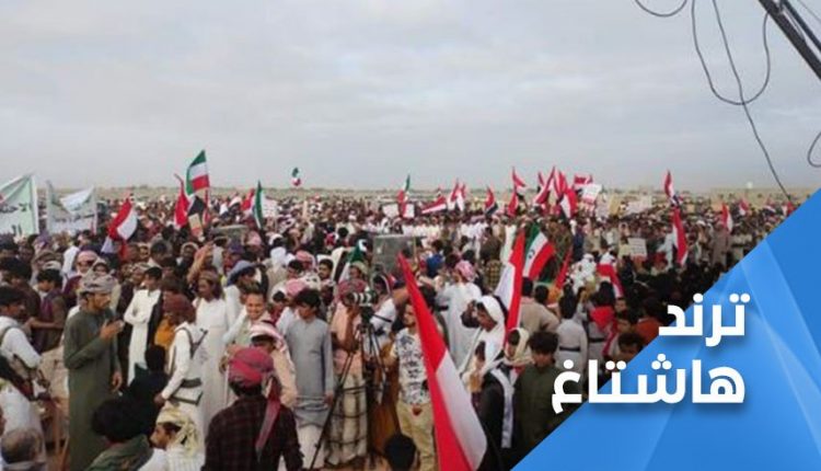 تفاعل مغردون يمنيون مع وسم #انتفاضة_المهره_ضد_الاحتلال تزامناً مع فعاليات أبناء المهرة في مدينة الغيضة رفضاً للاحتلال الأجنبي.
