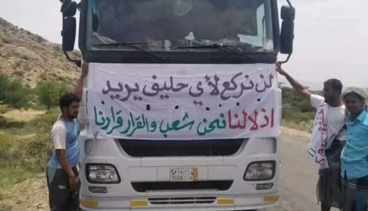 وكان الشباب امهلوا سلطات هادي في المحافظة 15 يوم لتنفيذ مطالبهم بصرف مرتبات الموظفين ووقف تدهور العملة وايجاد حل لارتفاع أسعار الأسماك في السوق المحلية، لكن تجاهل مطالبهم دفعهم لإعادة قطع الطريق.