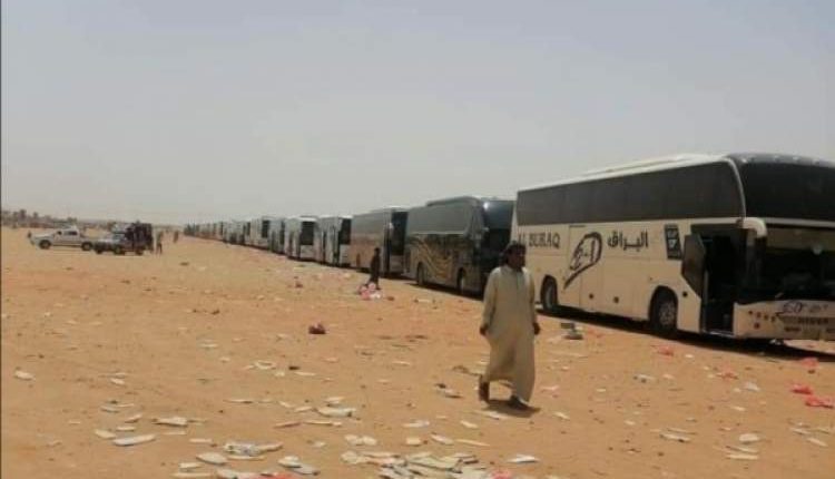 وتداول ناشطون يمنيون على مواقع التواصل الاجتماعي صوراً تظهر طوابير طويلة من الباصات والسيارات الخاصة في منفذ الوديعة جراء الزحمة.
