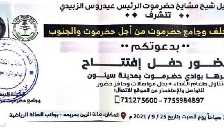 وافادت مصادر قبلية بأن العشرات غادروا اللقاء الذي اقيم بمناسبة إفتتاح مقر الحلف والمؤتمر الجامع بوادي وصحراء حضرموت إحتجاجاً على ورود اسم عيدروس الزبيدي كرئيس يدعم الافتتاح.