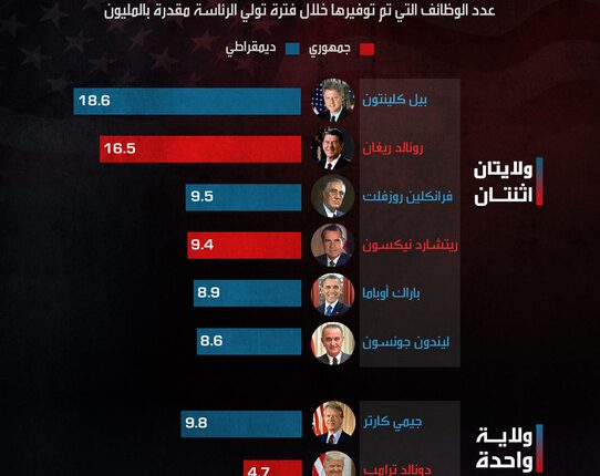 من هم الرؤساء الأمريكيون الأكثر توفيراً للوظائف.. “إنفوجرافيك“..!