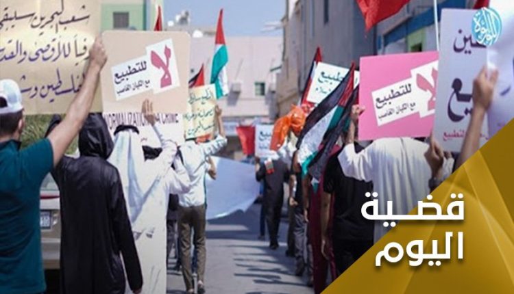 من الواضح ان الشعب البحريني، كان ومازال من بين اكثر الشعوب العربية دعماً للقضية الفلسطينية، على مستوى النخبة وعلى مستوى الشارع، وهو ما يفسر خروج تظاهرات نددت بالتطبيع مع الاحتلال الإسرائيلي، بالتزامن مع وصول لابيد، الى المنامة، حيث رفع المتظاهرون لافتات، تندد بالاحتلال، وترفض التطبيع، وحرقوا العلم الاسرائيلي، وحملوا أعلام فلسطين والبحرين، وصورا للقدس والأقصى، فيما شهد هاشتاغ “البحرين ضد التطبيع” و”البحرين ترفض الصهاينة” تفاعلا واسعا عبر مواقع التواصل الاجتماعي.