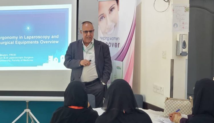 الورشة التي يحاضر فيها البروفيسور /ياسر عبد المغني أستاذ الجراحة العامة وجراحة المناظير بجامعة صنعاء تتلقى فيها ثلاثون من الكادر الاستشاري والاختصاصي في مجال النساء والولادة بأمانة العاصمة ومحافظة صنعاء أحدث وسائل وطرق جراحة المناظير في مجال النساء والولادة.