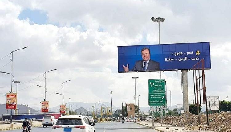 انتشرت صور عملاقة لوزير الإعلام اللبناني جورج قرداحي في شوارع العاصمة اليمنية صنعاء.