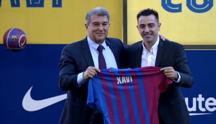 قدم نادي برشلونة، مدربه الجديد تشافي هرنانديز أمام الآلاف من عشاق النادي في ملعب “كامب نو”، اليوم الاثنين.