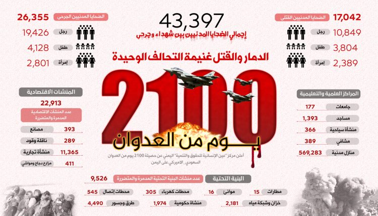 2100 يوم من العدوان.. الدمار والقتل غنيمة التحالف الوحيدة.. “إنفوجرافيك“..!