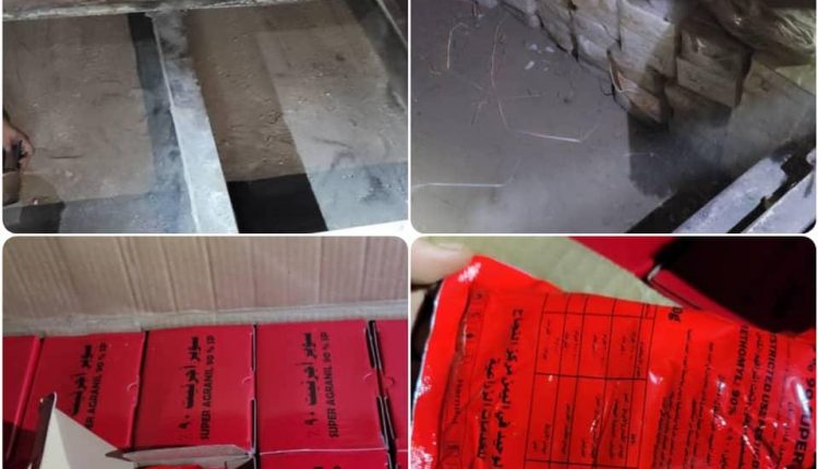 تمكًن رجال الجمارك في مركز جبل رأس الجمركي بمحافظة الحديدة مؤخراً من ضبط مبيدات زراعية ممنوعة وخطيرة وشديدة السمية بكمية 110 كراتين.