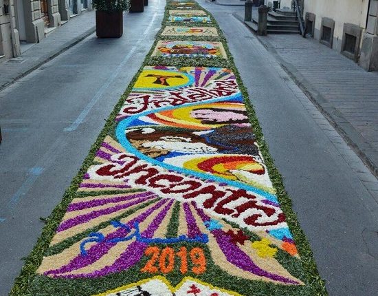 في تقليد رائع يعود أصله إلى معجزة القرن الثالث عشر، تصنع العديد من المدن الصغيرة في إيطاليا أقمشة من آلاف الزهور لتغطية شوارعها في عيد كوربوس دوميني، الذي يكون تسعة أيام بعد عيد الفصح.