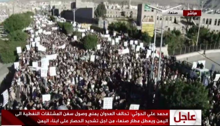 مسيرة حاشدة في صنعاء والمحافظات الأخرى رفضاً للتصعيد الأمريكي وإستمرار العدوان..!