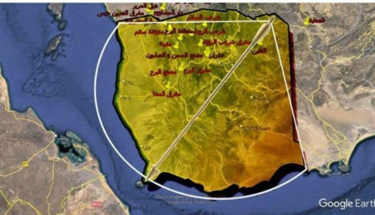 حيث تظهر تلك القطعة الجغرافية على شكل قوس وتضم جزيرة ميون وباب المندب وتمتد شرقاً في الداخل اليمني حتى عدين إب لتبتلع عدداً من المديريات التابعة لست محافظات هي الحديدة وعدن وتعز وإب ولحج والضالع.