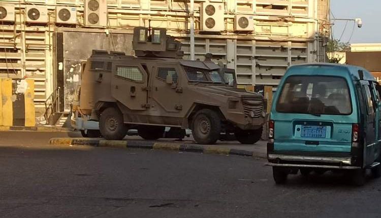 انتشرت قوات عسكرية بشكل مكثف، السبت، حول مبنى البنك المركزي في عدن.