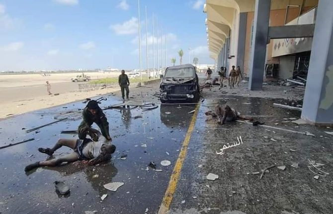 وأظهرت صور حصل عليها “أبين اليوم” حجم الدمار في المطار، ومشاهد لجثث ضحايا قضوا في الحادث مع محاولات بدائية من قبل مسعفين لإنقاذهم.