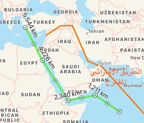 قررت الإمارات فجأة أن تذهب إلى سوريا ثم تركيا ثم إيران وقبلهم الصين لعقد اتفاقيات استراتيجية للشراكة وتمويل طريق جديد يصنع حل بديل للتجارة البحرية التاريخية عن طريق خليج عدن والبحر الأحمر ومضيق السويس من خلال اقتراح طريق بحري يمر عبر دبي ثم عبر بحر الخليج لينتقل بريًا عبر إيران وتركيا وينتهي في موانئ سوريا في البحر المتوسط، مستغلة الفوضى الكبيرة التي خلفتها في اليمن والحادث الأخير في قناة السويس للترويج لطريقها البديل “الآمن” والسريع والأقل كلفة.