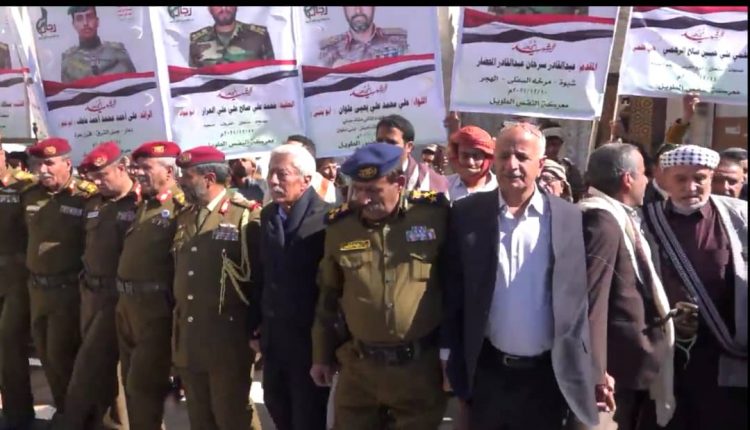 في موكب جنائزي مهيب شيع أبناء محافظة شبوة وشخصياتها الاجتماعية ومشائخ قبائل المحافظة في العاصمة صنعاء جثمان الشهيد المقدم عبدالقادر سرحان عبدالقادر المحضار وعدد من رفاقه الذين ارتقوا شهداء في ساحات العزة والكرامة دفاعاً عن الدين والوطن.