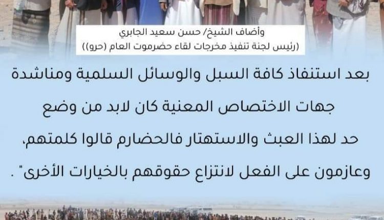 مع إستمرار التصعيد القبلي ضد حكومة هادي.. إليكم تفاصيل مطالب قبائل حضرموت التي وردت بلقاء “حرو“..!