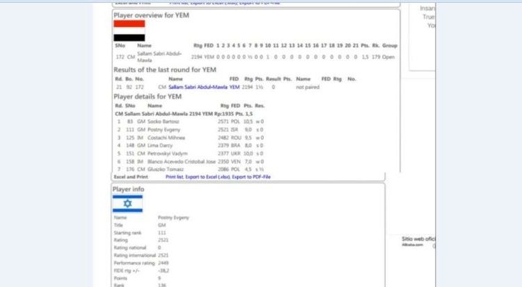 قال سنان: فضيحة وسابقة لأول مرة في تاريخ اليمن رئيس الإتحاد اليمني للشطرنج الدكتور صبري عبدالمولى لعب مع لاعب إسرائيلي في بطولة العالم للشطرنج ولا من شاف ولا من دري؟ وسط تكتيم شديد من قبل الإتحاد ومسؤوليه..!