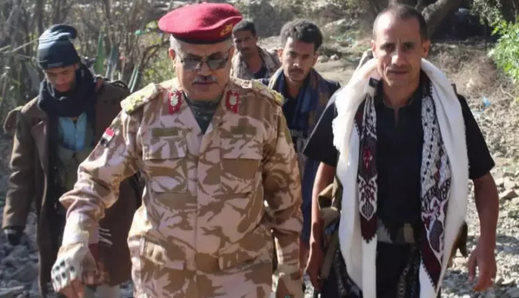 وزار أركان حرب محور تعز عبدالعزيز المجيدي الجبهات في غرب مدينة تعز بعد يوم فقط على إنسحاب وحدات المحور من مناطقها في جبهة العنينين بجبل حبشي.