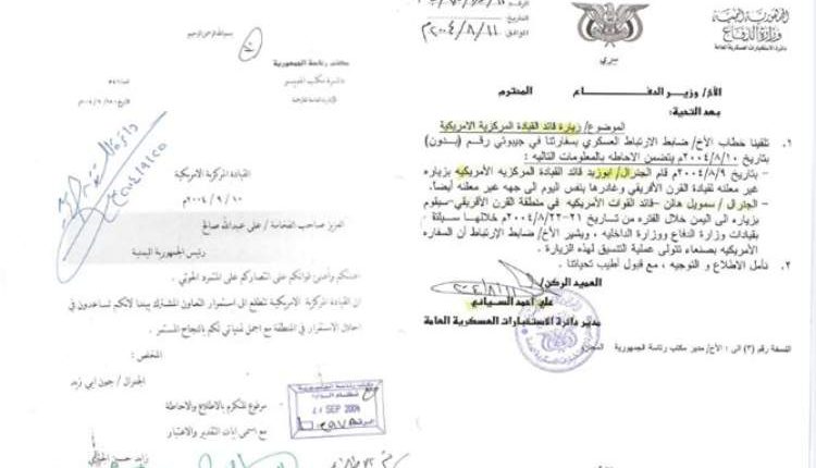 وكذا رسالة شكر موجهة من قائد القيادة الأمريكية يشكر فيها علي عبدالله صالح على قتل مؤسس حركة انصار الله في اليمن حسين بدرالدين الحوثي ودعوته إلى استمرار التعاون المشترك بينهما.