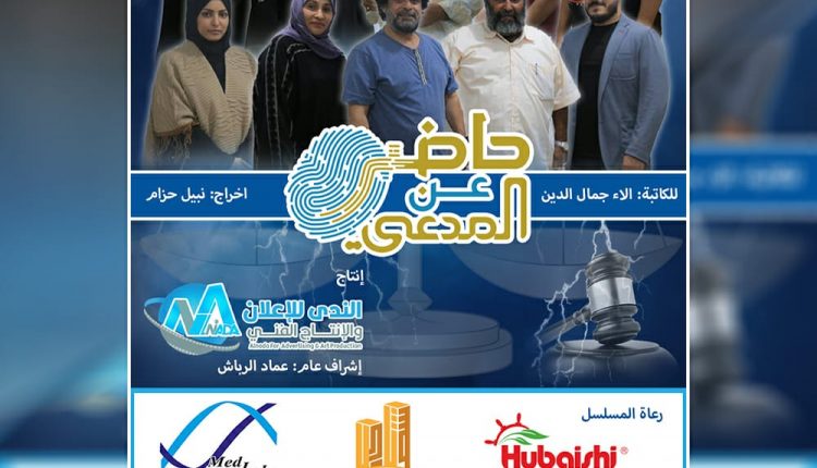 وفي تصريح صحافي اكد عماد الرباش المدير التنفيذي في الندى للإعلان والإنتاج الفني ان مسلسل “حاضر عن المدعي” من تأليف الكاتبة آلاء جمال وإخراج نجم الدراما اليمنية الممثل المخضرم نبيل حزام ويشاركه بطولة المسلسل الممثلة اماني الذماري وعبدالله الكميم ، الى جانب نخبة من نجوم الدراما اليمنية.