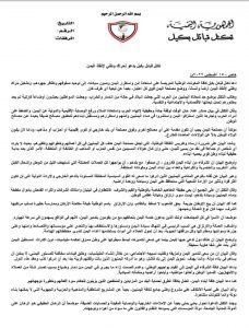 كما دعا البيان كافة أبناء اليمن، العمل بكافة الطرق لحماية البلد من المزايدين والمنتفعين الذين يزينون للحكام سوء أفعالهم وخطورة توجهاتهم.