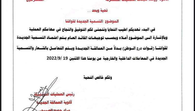 وأصدر حمدي شكري الصبيحي، الرجل الثاني في العمالقة، قراراً بتعيير اسم “ألوية العمالقة الجديدة” التي يقودها بشير المضربي إلى “ألوية درع الوطن”..