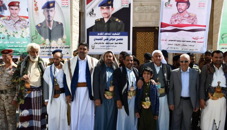 حيث تم تشييع جثامين الشهيدين المقدم محسن عوض علي الجنيدي والشهيد الرائد فهد عبدالله صالح علوي الجنيدي.