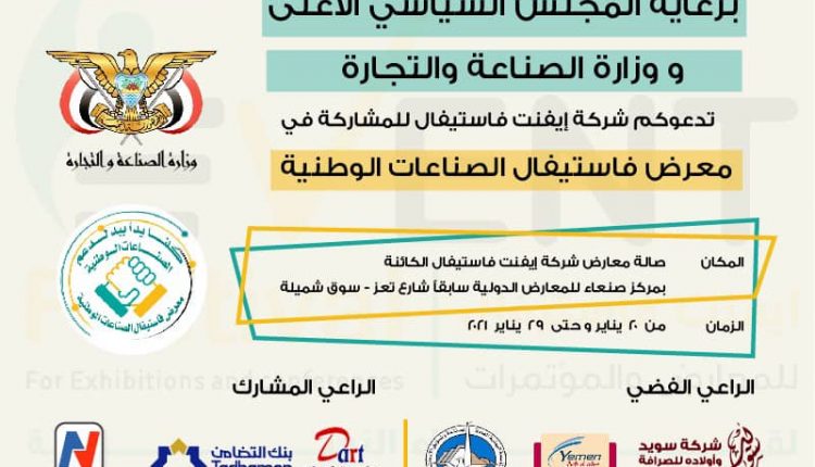 شركة إيفنت فستيفال للمعارض تعلن إستكمال التحضيرات النهائية لإقامة معرض الصناعات والمنتجات الوطنية الأول من نوعه بصنعاء..!
