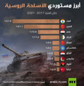 أبرز مستوردي الأسلحة الروسية.. “إنفوجرافيك“..! On ديسمبر 1, 2022 4٬673 Share أبين اليوم – إنفوجرافيك أبرز مستوردي الأسلحة الروسية.. “إنفوجرافيك“..! المصدر: RT عربي قراءة المزيد أبرز مستوردي الأسلحة الروسية.. “إنفوجرافيك“..! 4٬673 Share FacebookTwitterGoogle+ReddItWhatsAppPinterestالبريد الإلكتروني