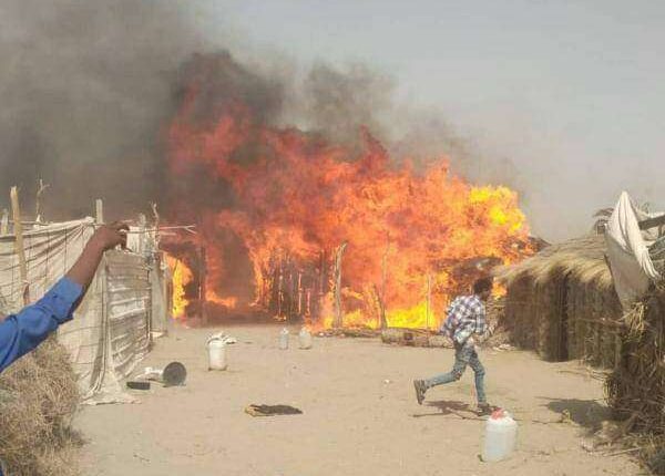 اندلع حريق هائل في مخيم للنازحين بمحافظة الحديدة غربي اليمن، تسبب في تشريد العديد من الأسر.