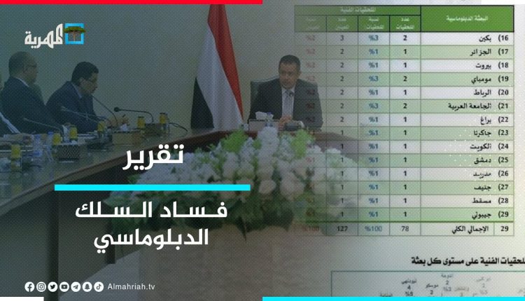 كما كشفت المصادر الدبلوماسية أن الفساد في السلك الدبلوماسي الذي أصبح لكل من هب ودب في حكومة هادي وحالياً العليمي وصل إلى الوفود المرسلة باسم اليمن للمشاركة في الفعاليات الخارجية والتي في الحقيقة تذهب لتمثيل الإصلاح فقط باسم اليمن، مشيرة إلى أن سبب استمرار المجتمع الدولي التعامل مع الوضع في اليمن بانحياز لصالح التحالف وحكومته الموالية هو عدم وجود من يمثل الشعب اليمني واقتصار من يمثل اليمن في المحافل الخارجية هم الطبقة الصاعدة للسلطة من المنتفعين من حزب الإصلاح وبقية القوى الموالية للتحالف المستفيدين أساساً من استمرار الحرب.