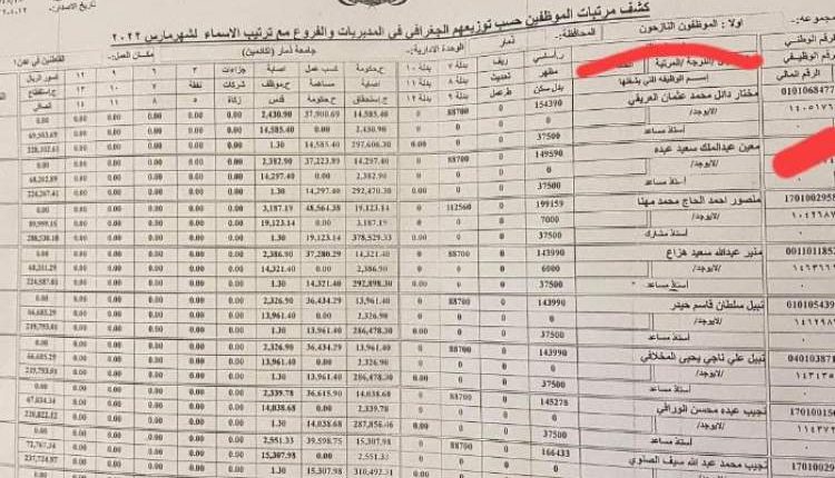 ونشر الصحفي صالح الحنشي وثيقة لصرف مرتبات النازحين تضمنت اسم معين عبدالملك.