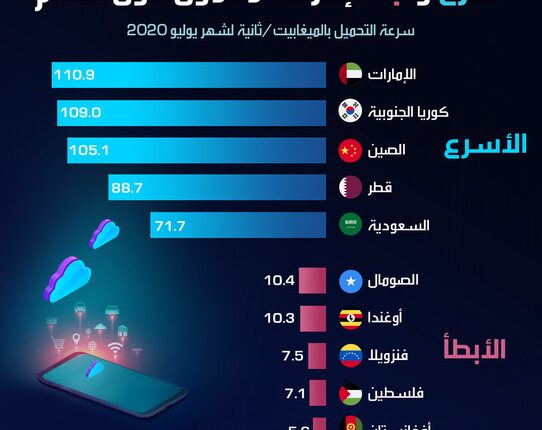 أسرع وأبطأ إنترنت محمول حول العالم.. “إنفوجرافيك“..!