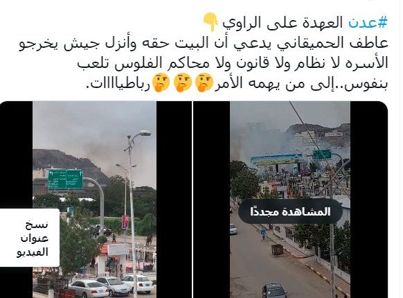 وانفجرت المواجهات بعد محاولة شائع طرد اشرة الحميقاني من منزلها في المديرية لدوافع مناطقية.