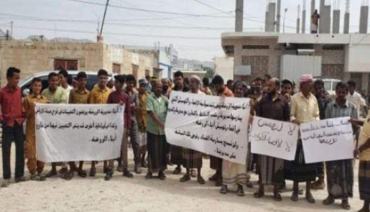 ورفع المحتجون، شعارات تندد بحجم الانتهاكات الغير إنسانية التي تطال أهالي المنطقة، في ظل استباحة قيادات الفصيل الإماراتي لممتلكاتهم، مؤكدين ملكيتهم الخاصة للأراضي والمنازل.
